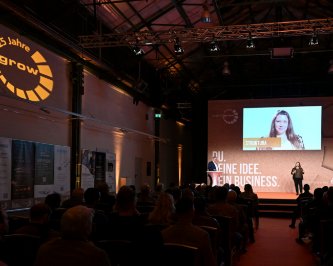 Siegerehrung, nach dem Pitch. Abendveranstaltung des Businessplanwettbewerbs start2grow 2026.